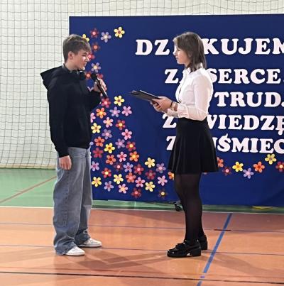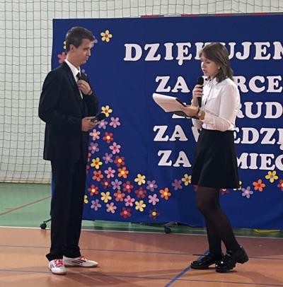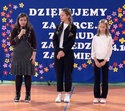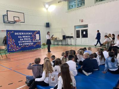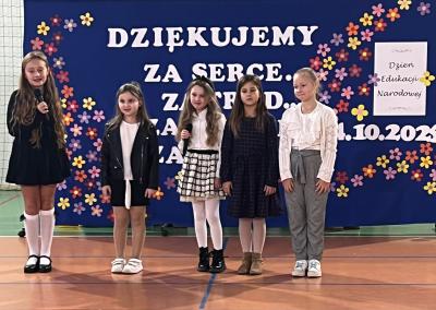 14 października w naszej szkole odbyła się uroczysta akademia z okazji Dnia Edukacji Narodowej. W programie uroczystości znalazły się wiersze, piosenki oraz zabawny skecz. Pani Dyrektor oraz Przewodnicząca Rady Rodziców złożyła życzenia, słowa uznania oraz podziękowania dla nauczycieli.