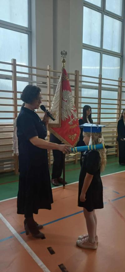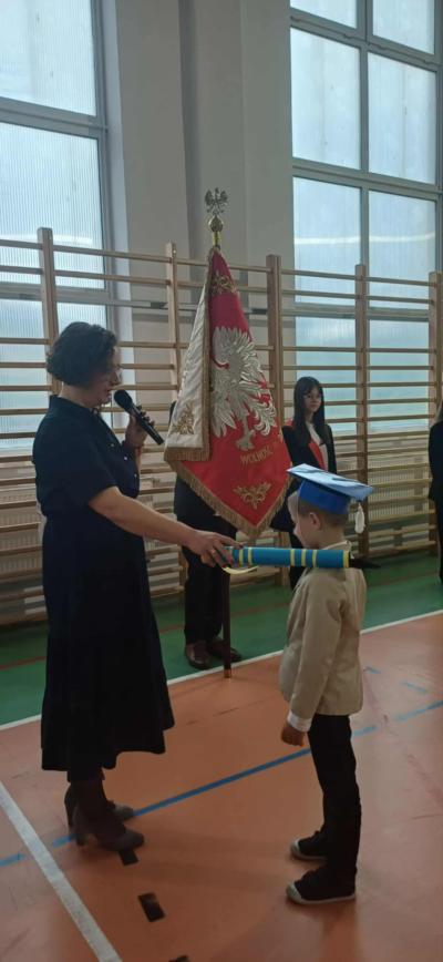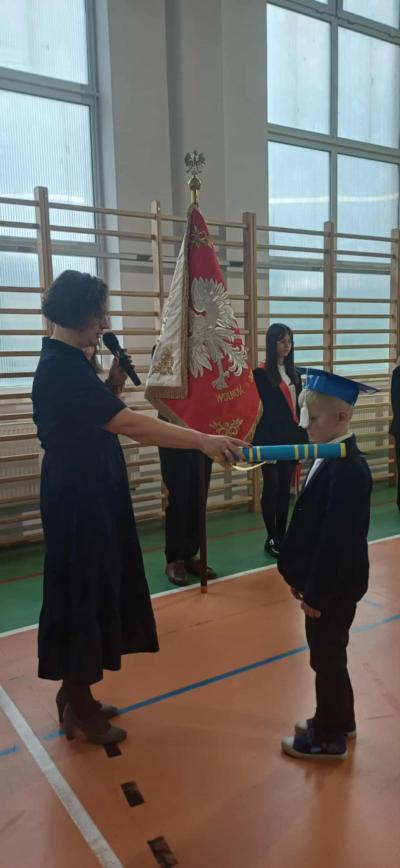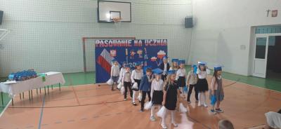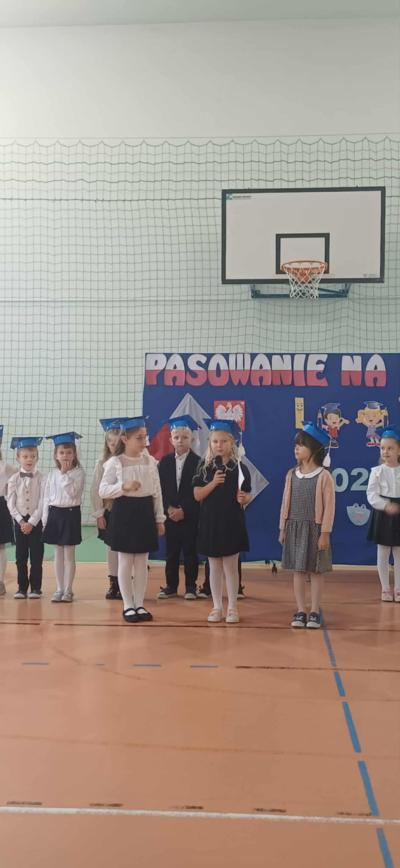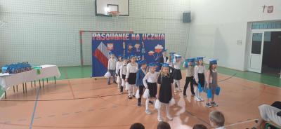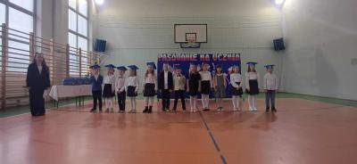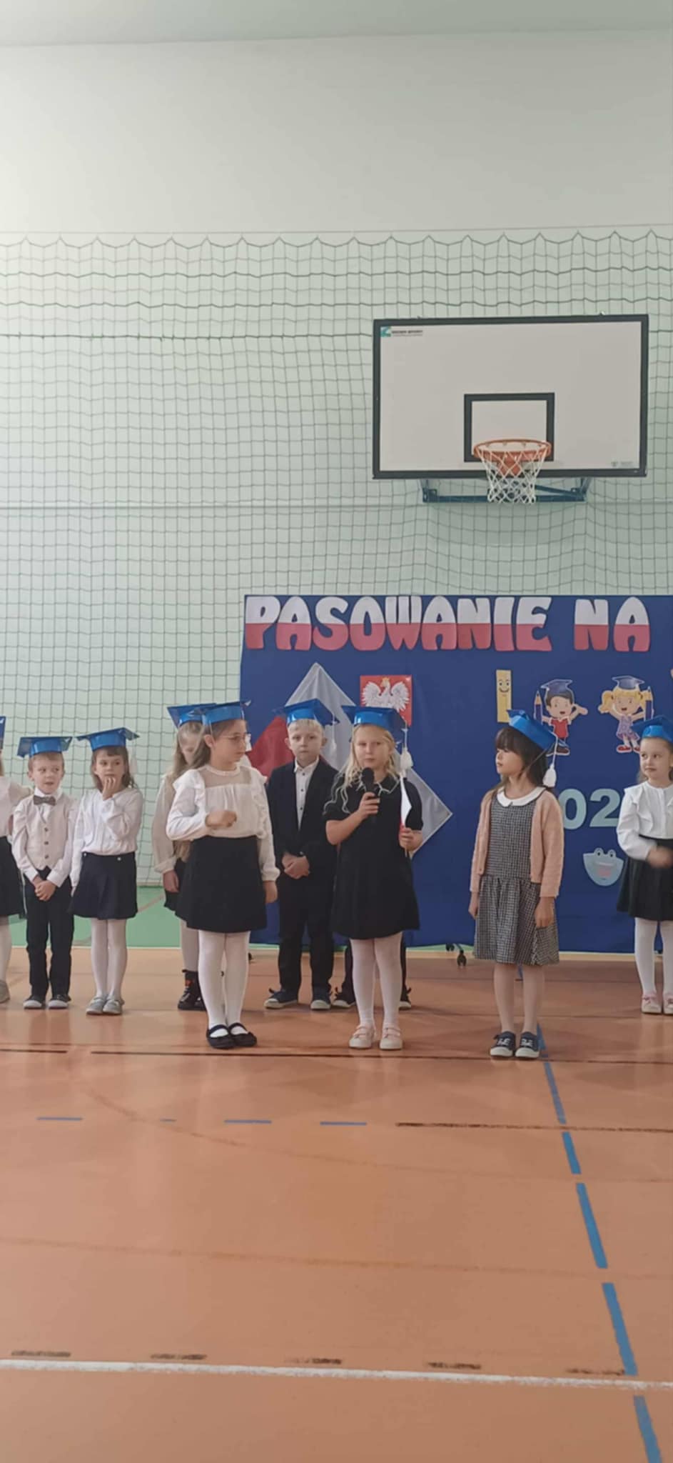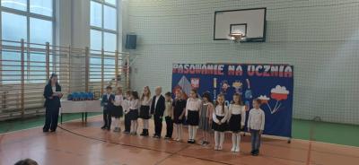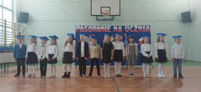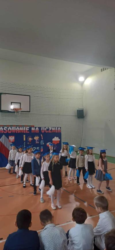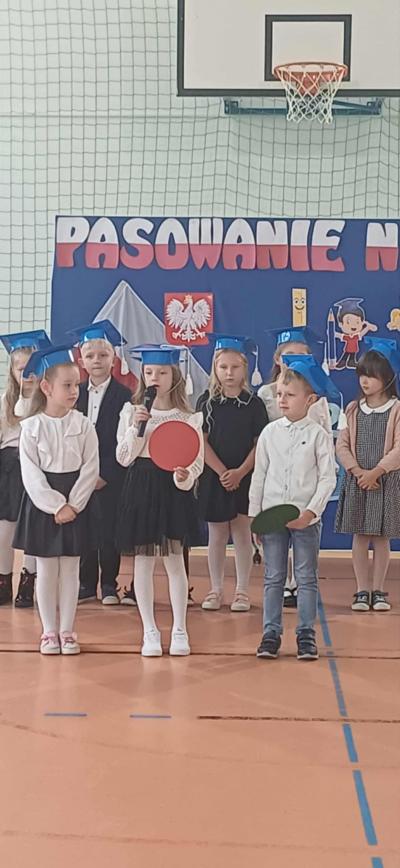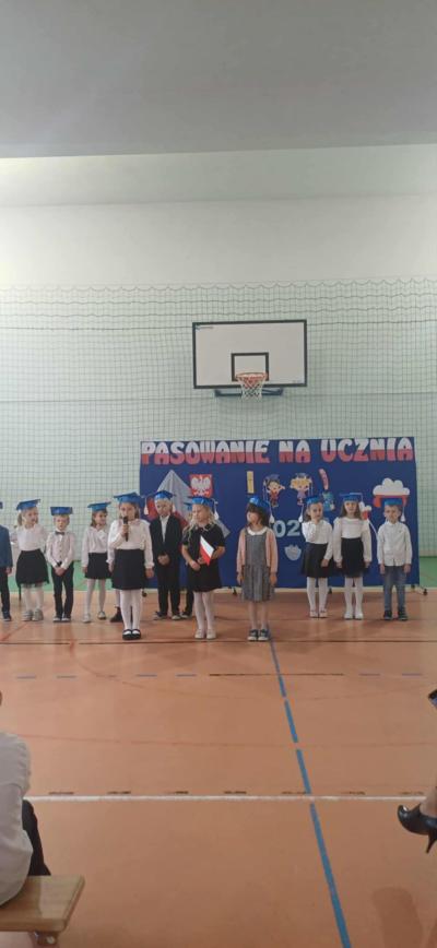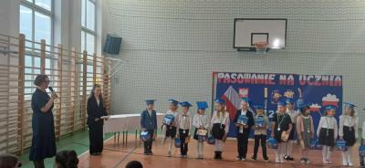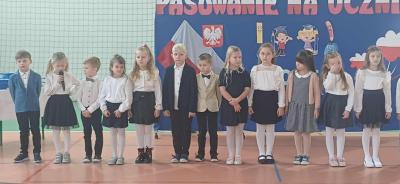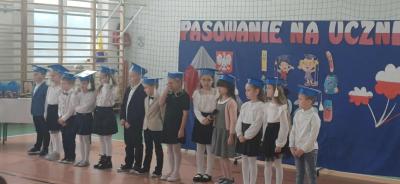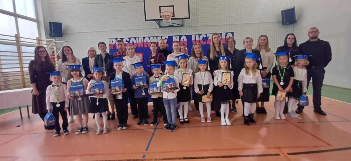 29 października 2025r. w naszej szkole odbyło się uroczyste ślubowanie i pasowanie na ucznia klasy pierwszej. W uroczystości wzięli udział rodzice oraz uczniowie klas młodszych z wychowawcami. Najpierw pierwszoklasiści przedstawili część artystyczną na którą składały się wiersze, piosenki, taniec oraz znajomość zasad ruchu drogowego. Następnie uczniowie w pięknych biretach w podniosłej atmosferze przed pocztem sztandarowym ślubowali być dobrymi Polakami, godnie reprezentować swoją szkołę oraz swym zachowaniem i nauką sprawiać radość rodzicom i nauczycielom. Po złożeniu ślubowania pani dyrektor mgr Ewa Chrobak dokonała symbolicznego pasowania na ucznia. Uczniowie otrzymali pamiątkowe medale, dyplomy oraz upominki ufundowane przez rodziców. Pani dyrektor skierowała gorące słowa do pierwszoklasistów i ich rodziców, uczniom życzyła wielu sukcesów w nauce. Rodzice przygotowali dla swoich pociech słodki poczęstunek. Ten dzień na długo pozostanie pierwszakom w pamięci.