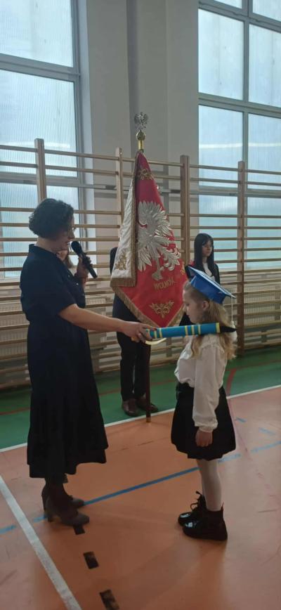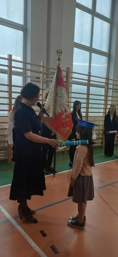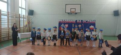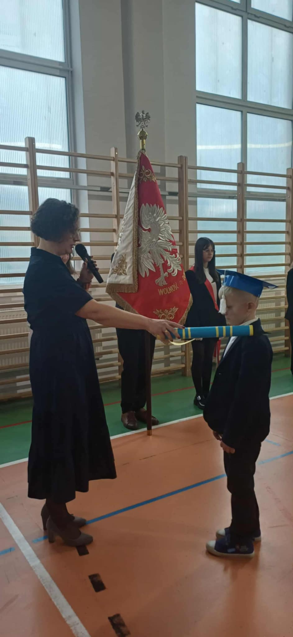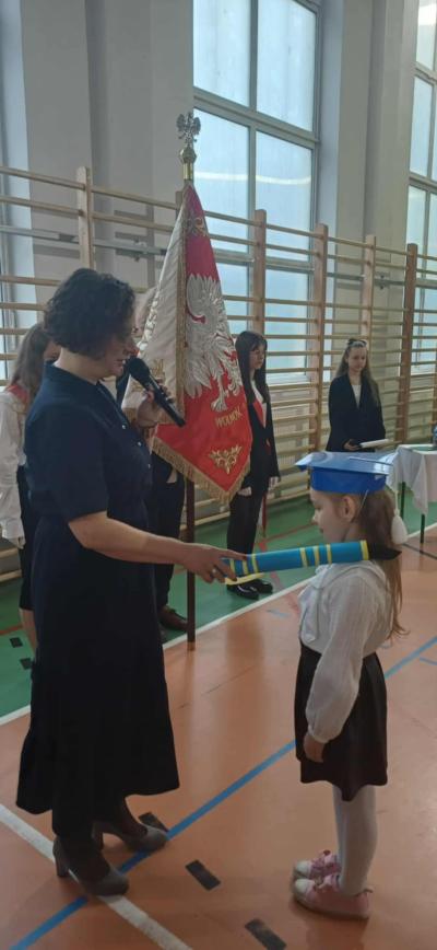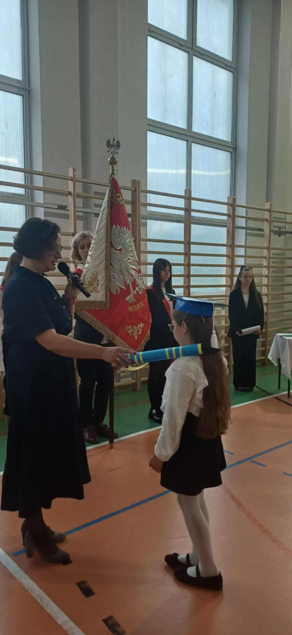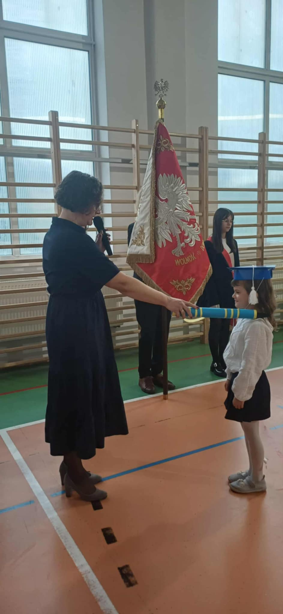 29 października 2025r. w naszej szkole odbyło się uroczyste ślubowanie i pasowanie na ucznia klasy pierwszej. W uroczystości wzięli udział rodzice oraz uczniowie klas młodszych z wychowawcami. Najpierw pierwszoklasiści przedstawili część artystyczną na którą składały się wiersze, piosenki, taniec oraz znajomość zasad ruchu drogowego. Następnie uczniowie w pięknych biretach w podniosłej atmosferze przed pocztem sztandarowym ślubowali być dobrymi Polakami, godnie reprezentować swoją szkołę oraz swym zachowaniem i nauką sprawiać radość rodzicom i nauczycielom. Po złożeniu ślubowania pani dyrektor mgr Ewa Chrobak dokonała symbolicznego pasowania na ucznia. Uczniowie otrzymali pamiątkowe medale, dyplomy oraz upominki ufundowane przez rodziców. Pani dyrektor skierowała gorące słowa do pierwszoklasistów i ich rodziców, uczniom życzyła wielu sukcesów w nauce. Rodzice przygotowali dla swoich pociech słodki poczęstunek. Ten dzień na długo pozostanie pierwszakom w pamięci.