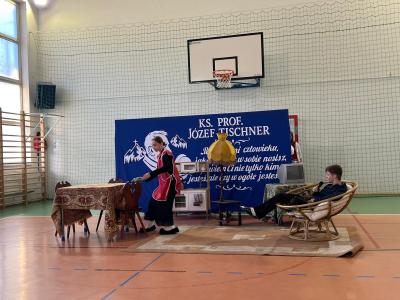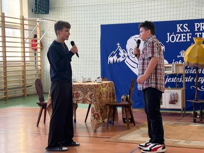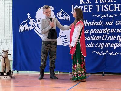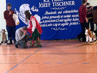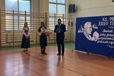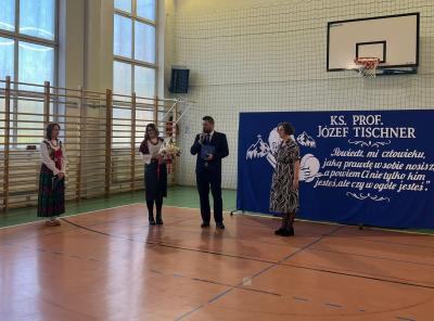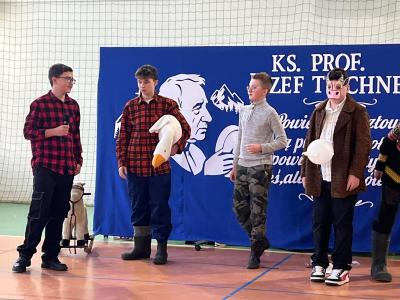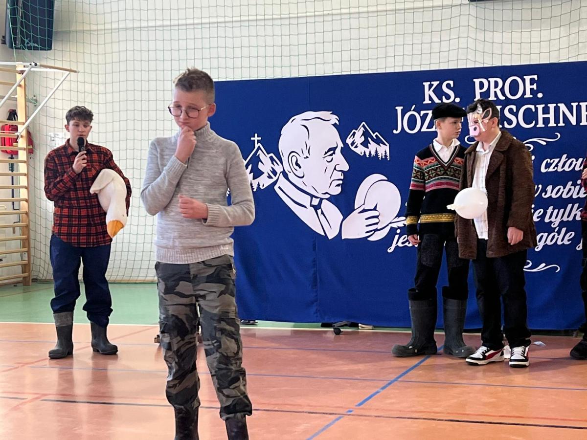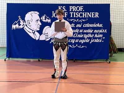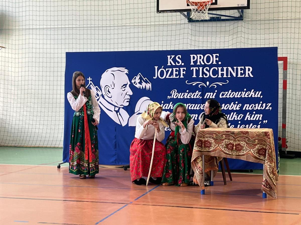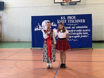 31 października obchodziliśmy Święto Patrona Szkoły ks. prof. J. Tischnera. Uroczystość była dla nas zarówno wielką lekcją patriotyzmu, jak i nauką bycia razem, nauką odpowiedzialności i międzyludzkiego współczucia. Świętowanie rozpoczęliśmy od wspólnej mszy świętej w kościele parafialnym w Ochotnicy Dolnej, po czym udaliśmy się do szkoły. Tą część uroczystości rozpoczęliśmy od wprowadzenia Sztandaru Szkoły oraz od odśpiewania hymnu szkoły. Uczniowie z klasy VII przedstawili sylwetkę patrona oraz jego najważniejsze dokonania. Szczególnym punktem programu były scenki teatralne, częściowo autorstwa uczniów klasy VII, przedstawiające mądrość życiową naszego patrona. Nie mogło zabraknąć tańców, śpiewu oraz wierszy recytowanych gwarą.