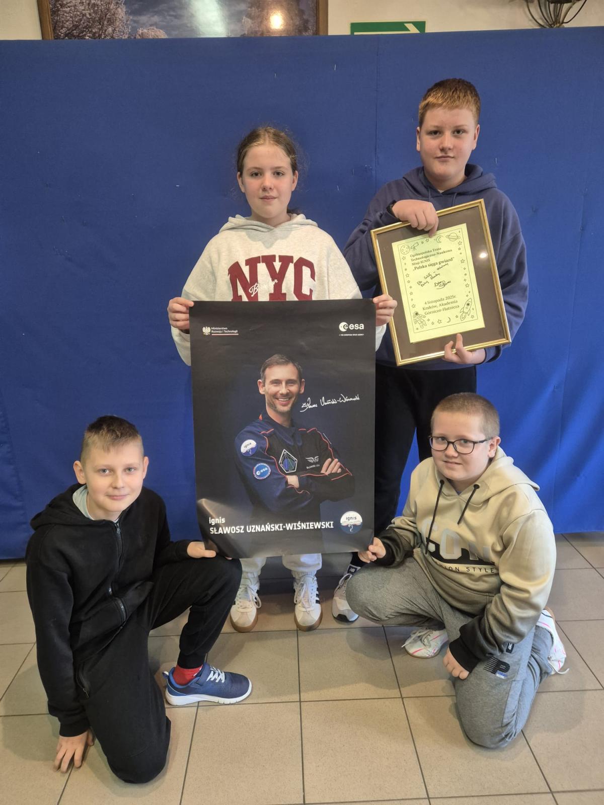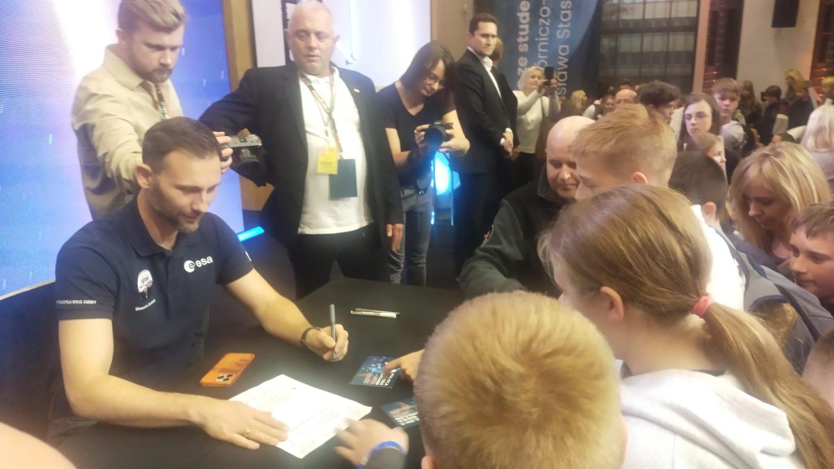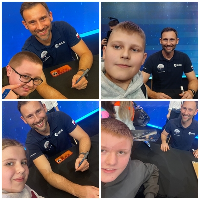 Uczniowie zadawali pytania, poznali ciekawostki o Międzynarodowej Stacji Kosmicznej i zrobili wspólne zdjęcie z astronautą. 📸