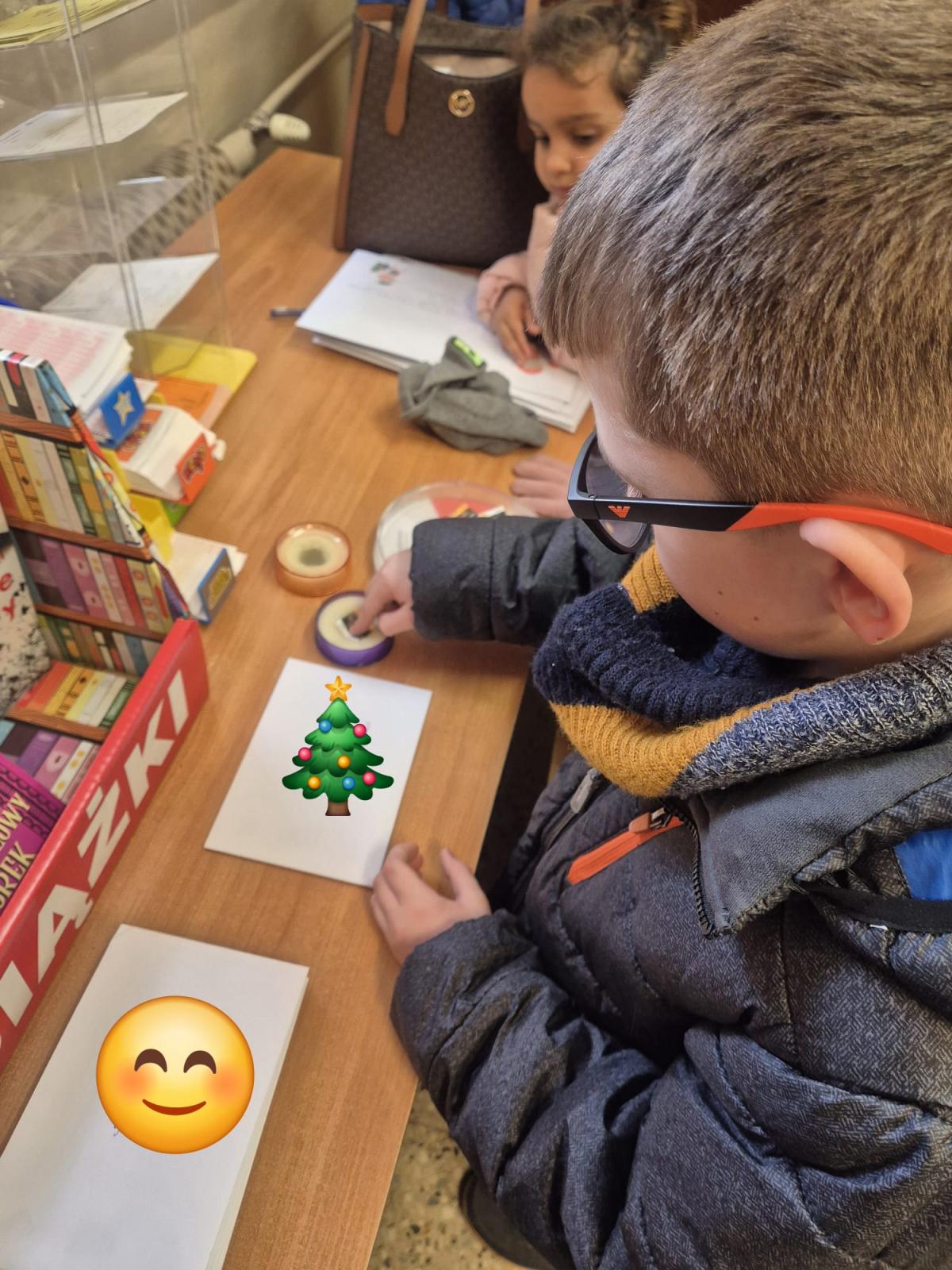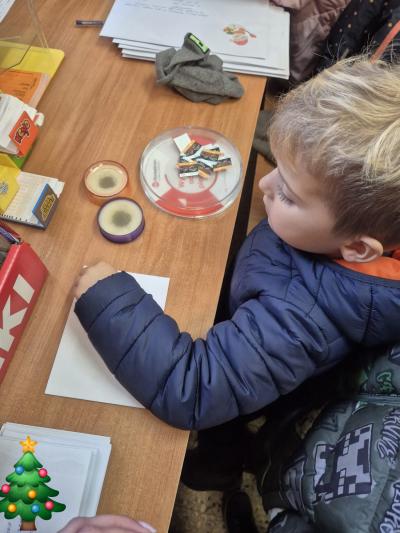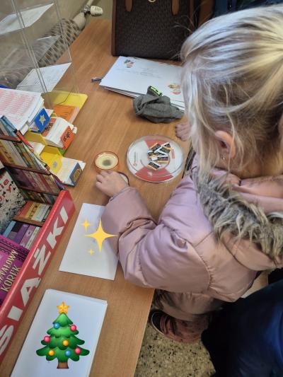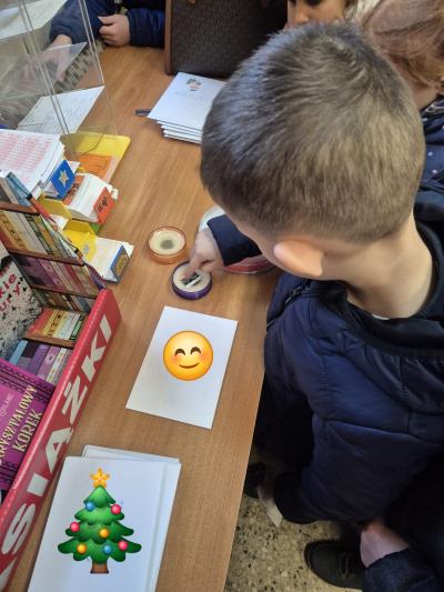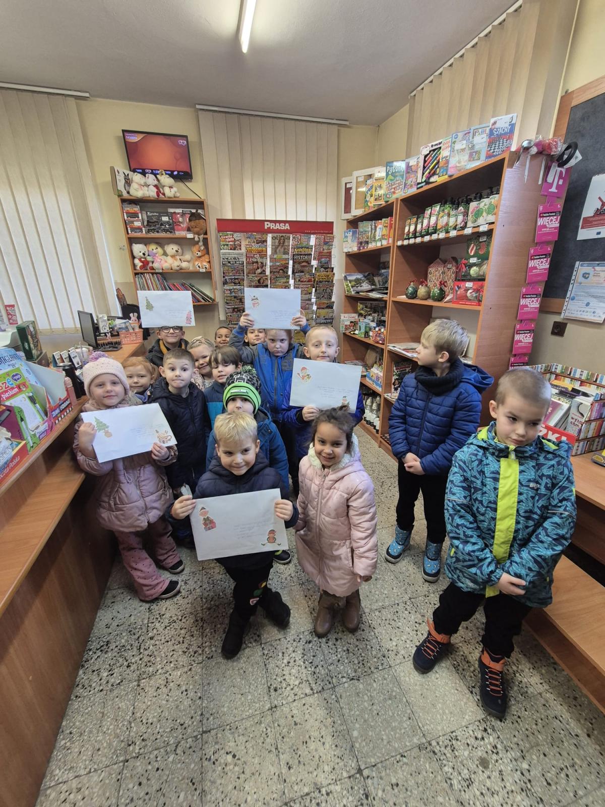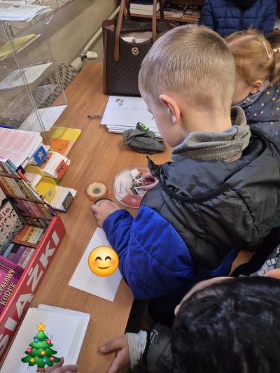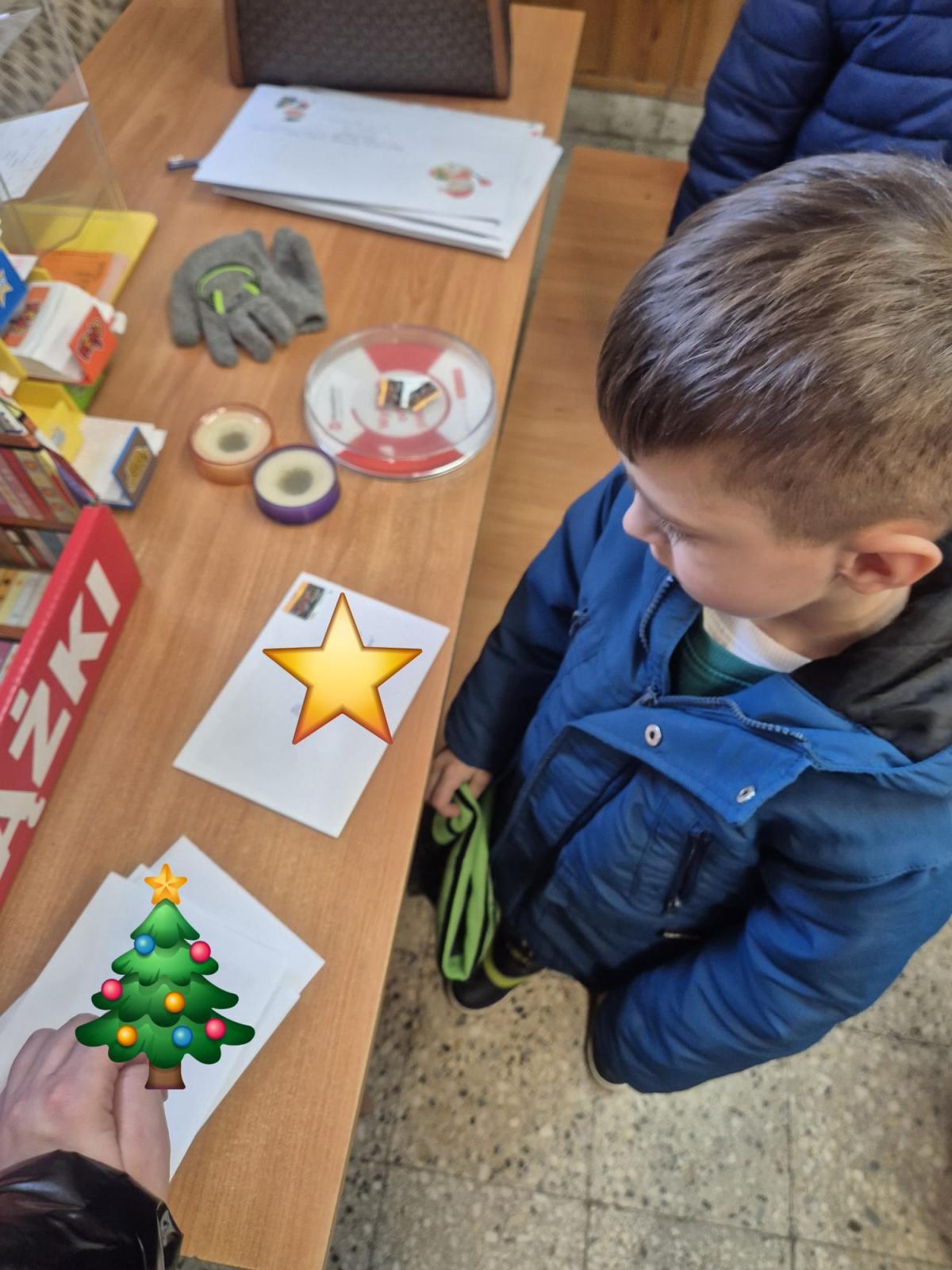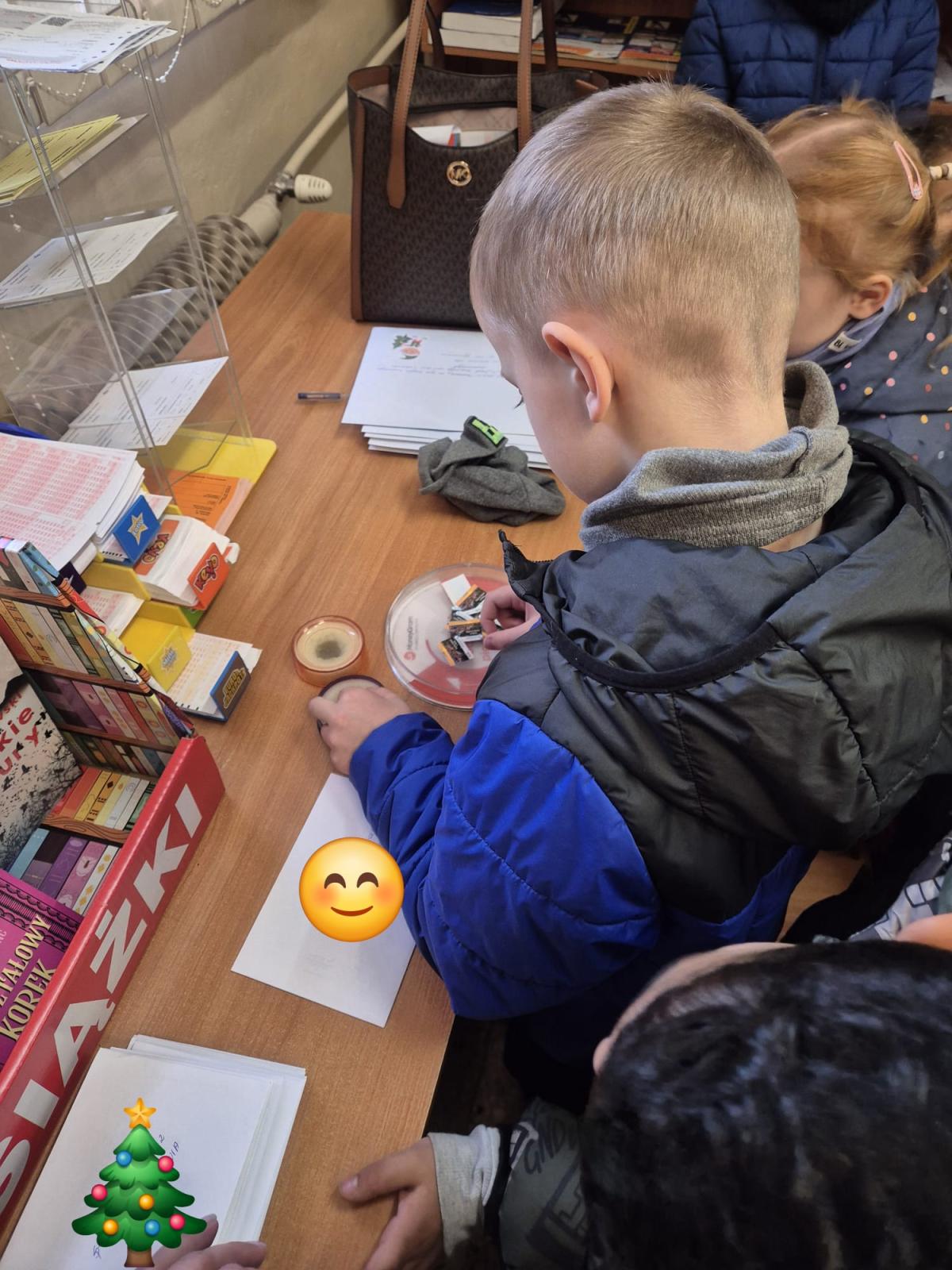 Głównym celem wizyty było wysłanie świątecznych kartek z życzeniami do kolegów i koleżanek z oddziałów przedszkolnych ze szkół z terenu naszej gminy 🎄❤. To była bardzo ciekawa i radosna lekcja w praktyce! 😊