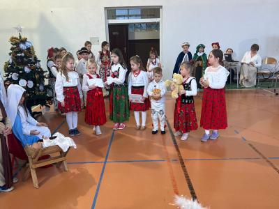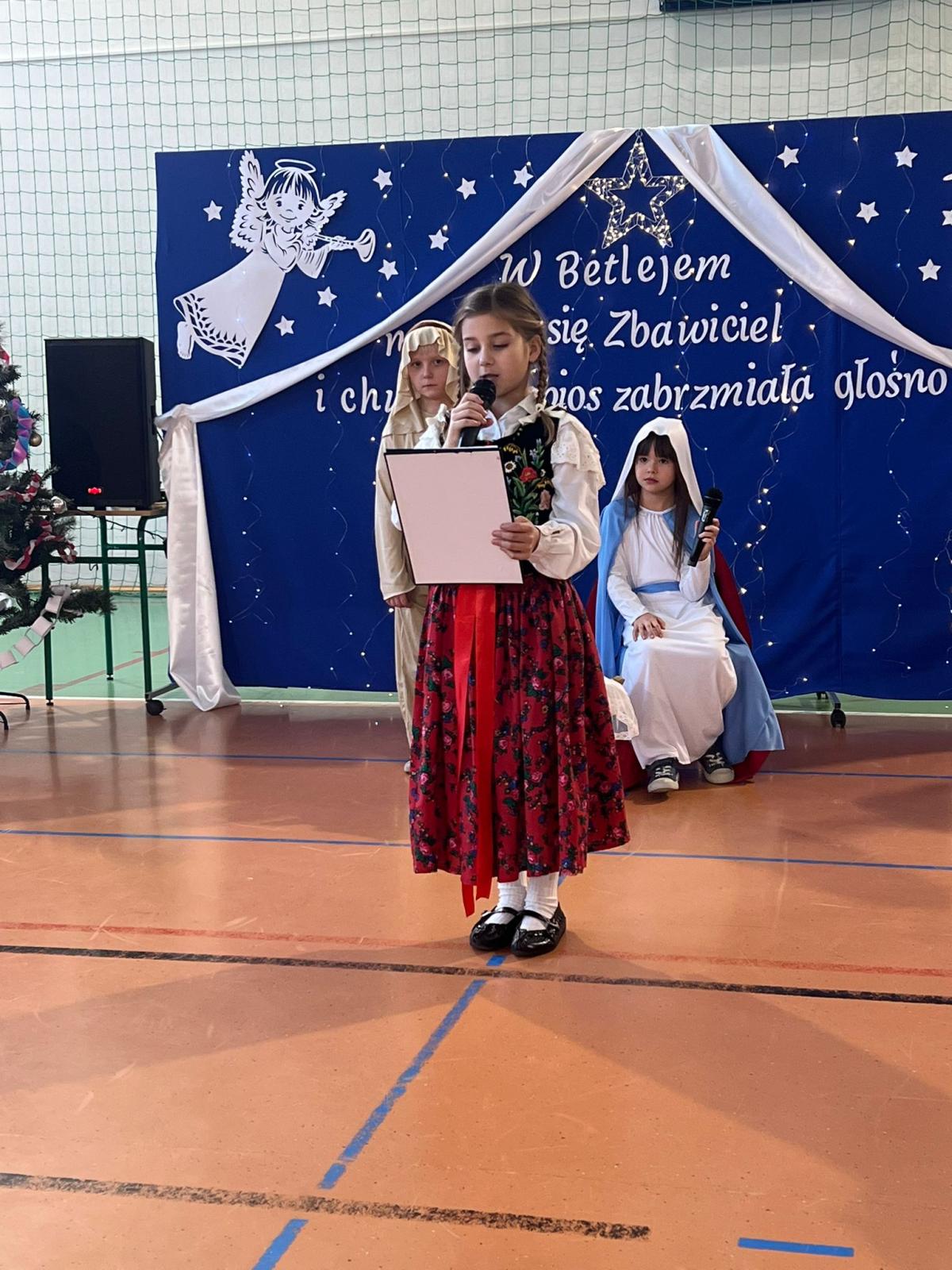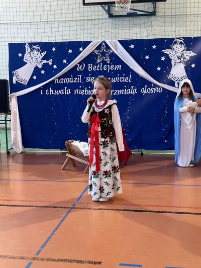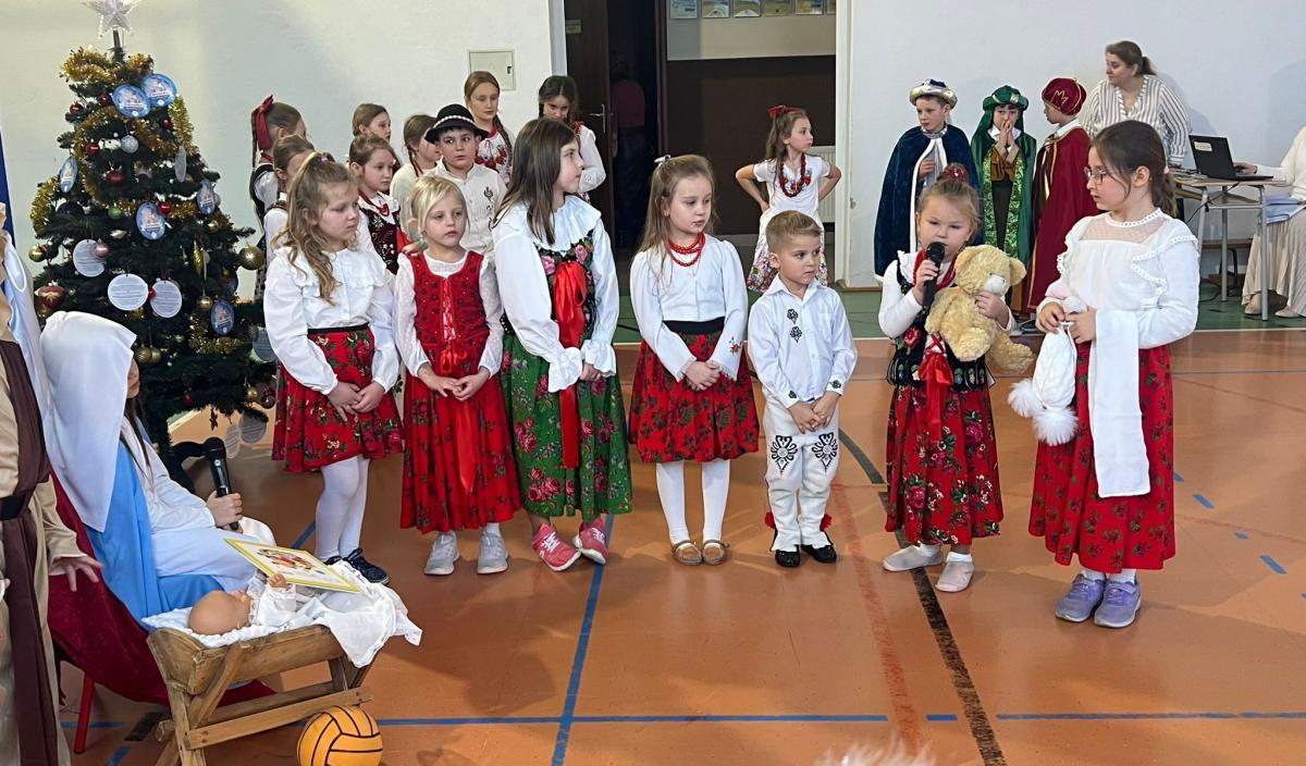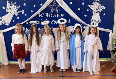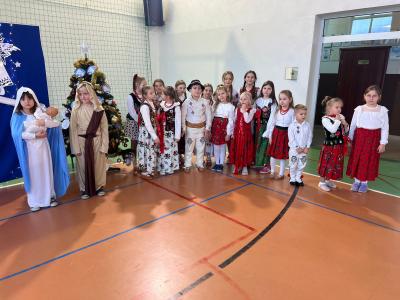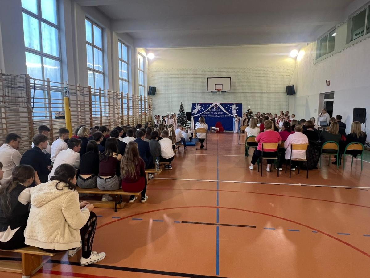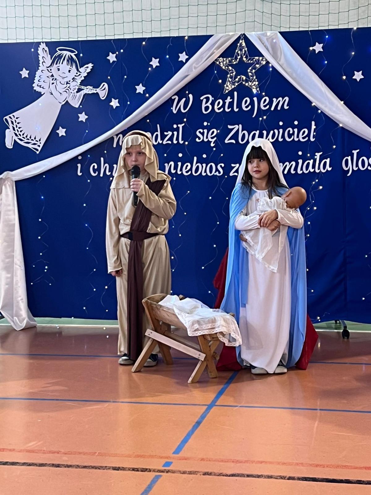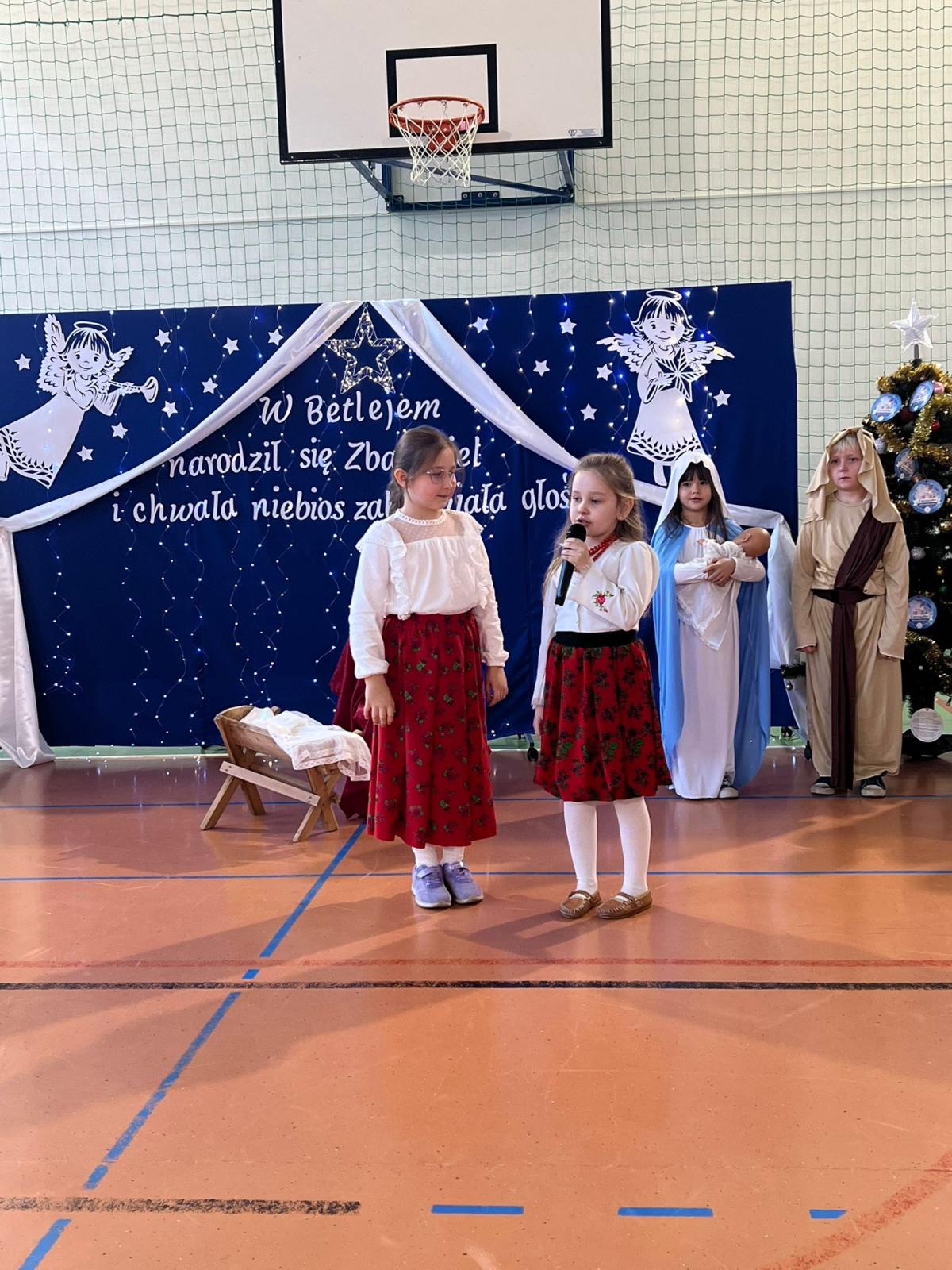 Ciszę betlejemskiej Nocy i radość Narodzin przeżywaliśmy 19 grudnia 2025 roku,  kiedy to uczniowie naszej szkoły z ogromnym zaangażowaniem wcielili sięw swoje role. Przypomnieli w ten sposób wydarzenia sprzed ponad dwóch tysięcy lat, kiedy to w Betlejem narodziło się Boże Dzieciątko. Dzieci wcieliły się w role Maryi i Józefa, pasterzy i aniołów, trzech króli, przybywających złożyć pokłon Jezusowi narodzonemu w ubogiej stajence. Świetności inscenizacji dodały kolędy i pastorałki, które napełniły wszystkich świąteczną radością i sprawiły, że poczuliśmy magię zbliżających się świąt.