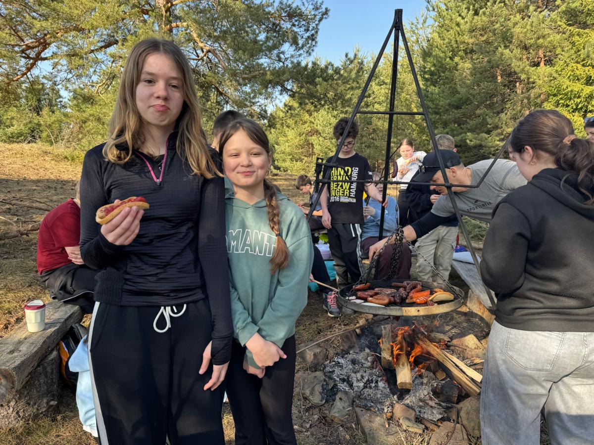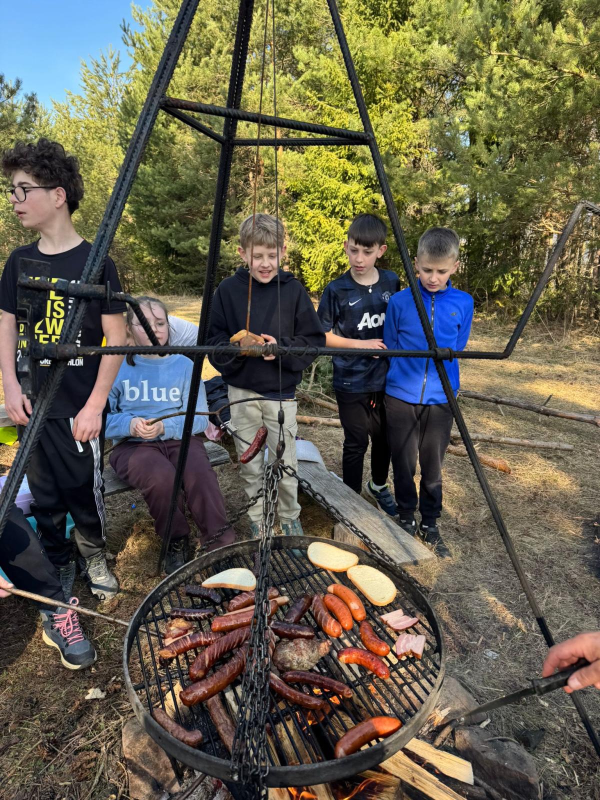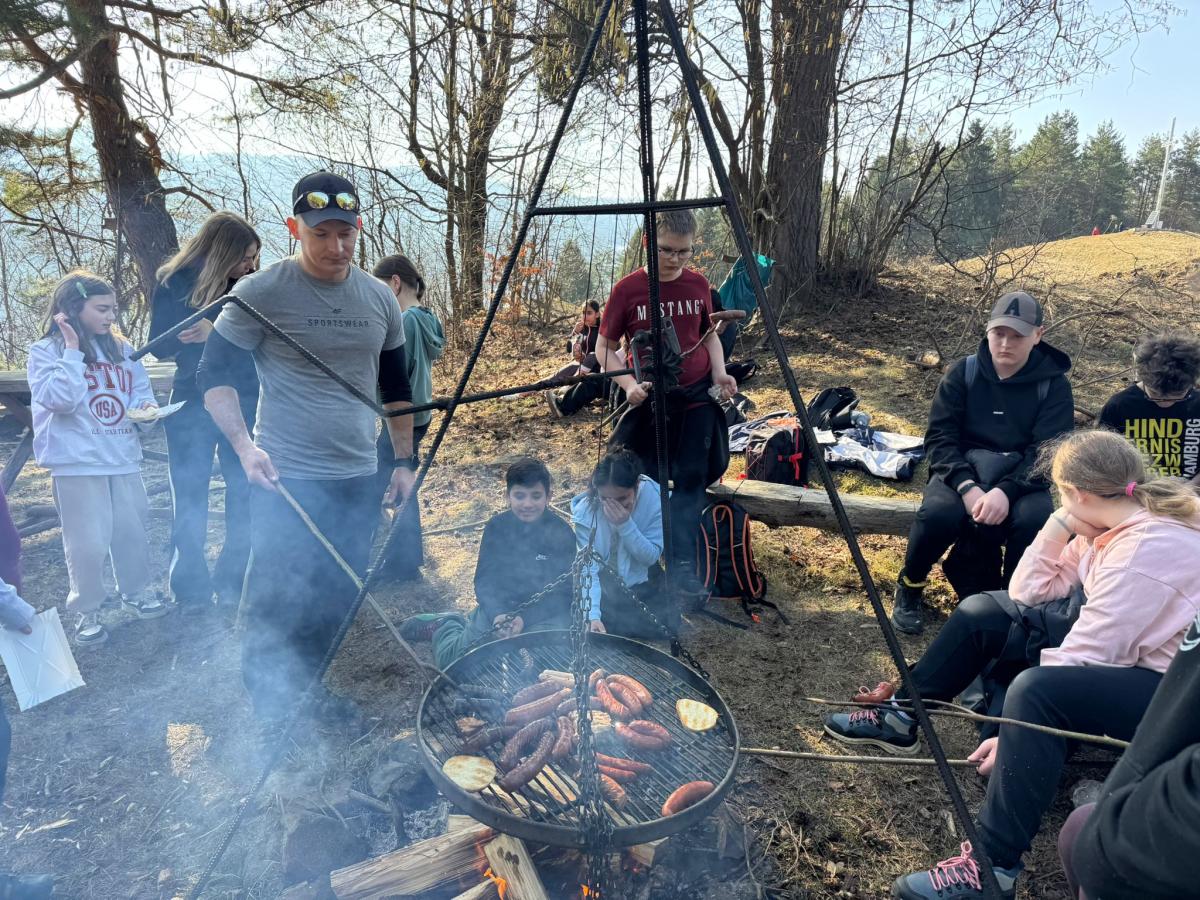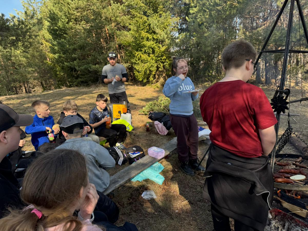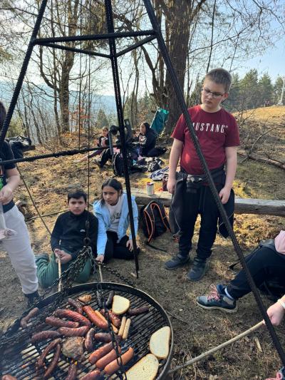 Po dotarciu na miejsce zorganizowaliśmy wspólne ognisko integracyjne. Pieczenie kiełbasek, śmiech i rozmowy sprawiły, że atmosfera była bardzo przyjazna i radosna. Była to świetna okazja, aby spędzić czas razem poza szkolnymi ławkami.