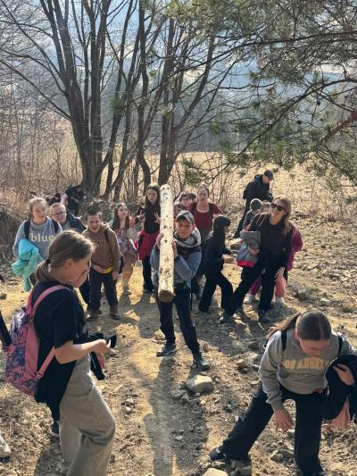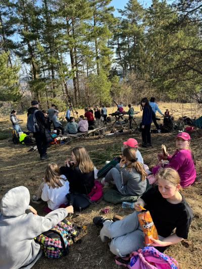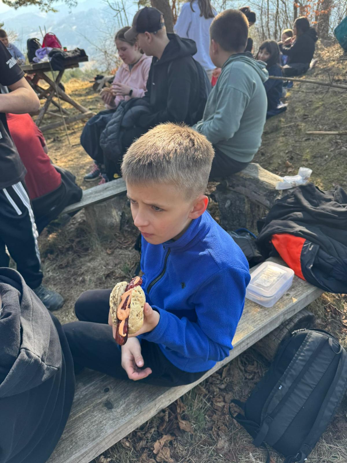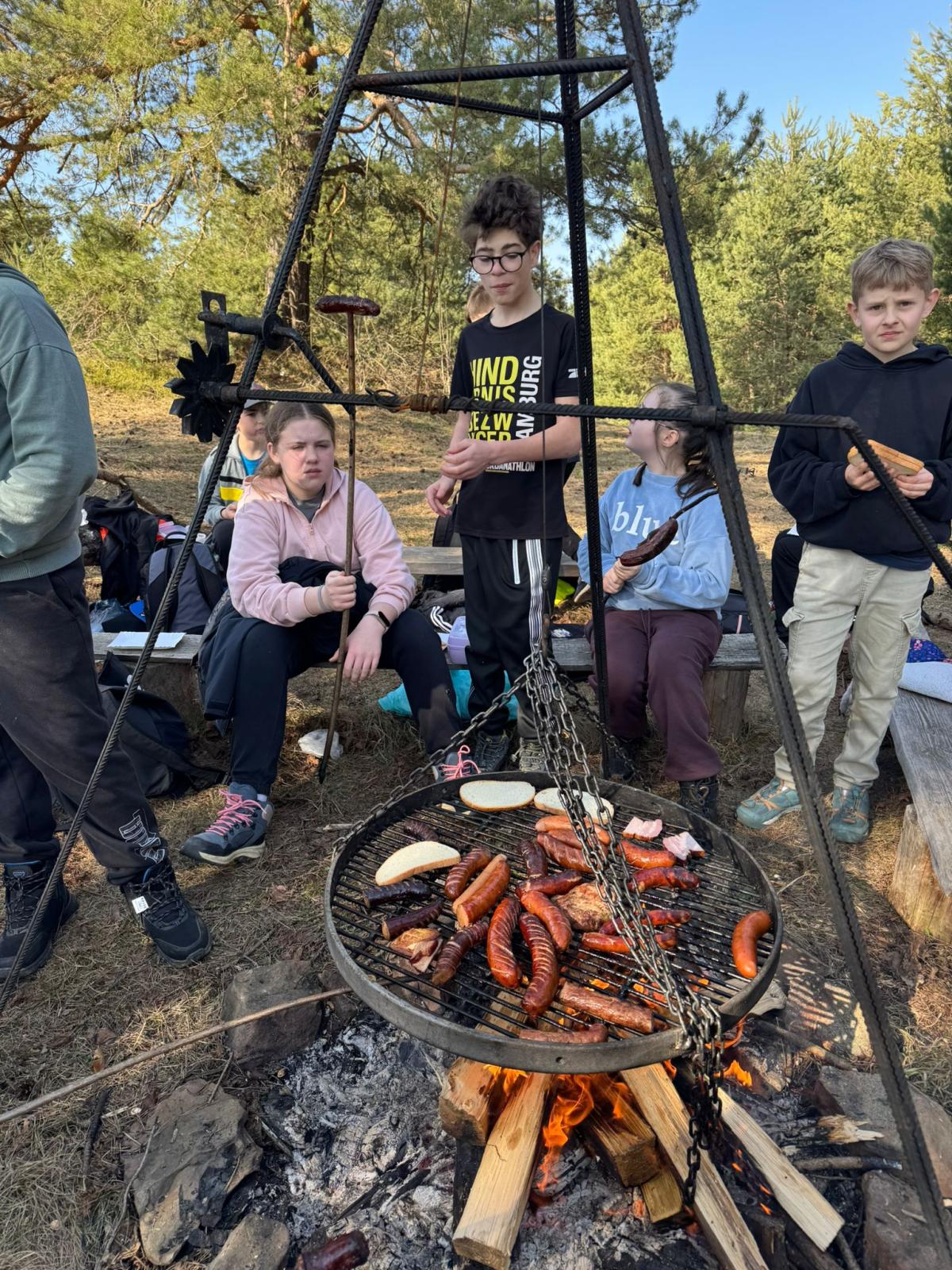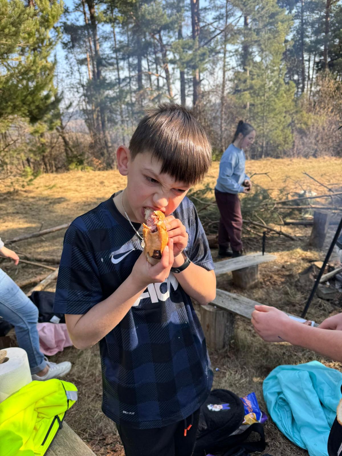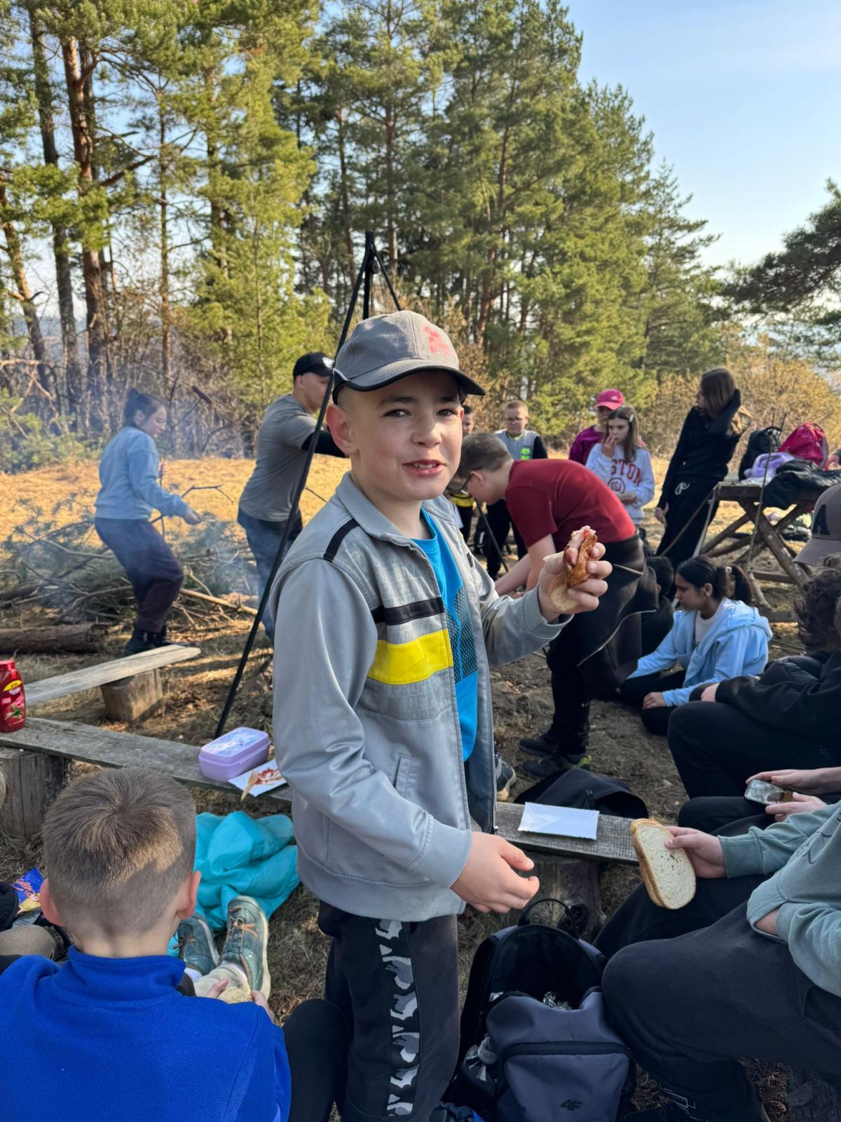 Po dotarciu na miejsce zorganizowaliśmy wspólne ognisko integracyjne. Pieczenie kiełbasek, śmiech i rozmowy sprawiły, że atmosfera była bardzo przyjazna i radosna. Była to świetna okazja, aby spędzić czas razem poza szkolnymi ławkami.