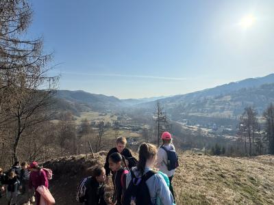 Dziś uczniowie klas 4, 5 i 6 uczestniczyli w wycieczce szkolnej na Krzyżowy Gronik. Była to wspaniała okazją do wspólnego spędzenia czasu. Już od rana dopisywała nam piękna, słoneczna pogoda, która zachęcała do wędrówki i zabawy na świeżym powietrzu. Podczas drogi podziwialiśmy malownicze widoki oraz cieszyliśmy się rozmowami z kolegami i koleżankami.
