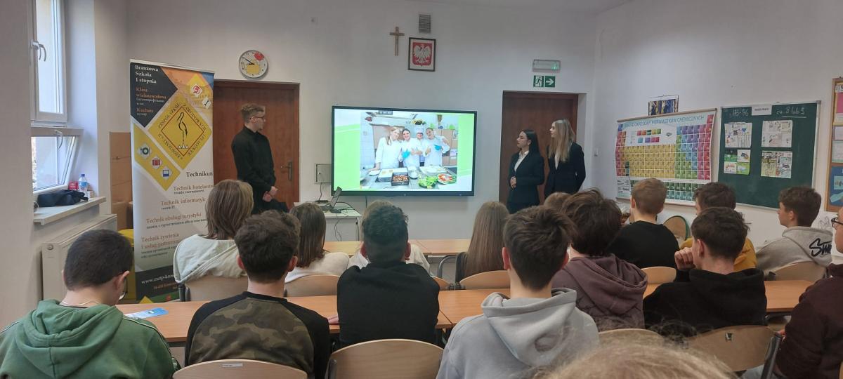 Uczniowie klasy 7 i 8 wzięli udział w prezentacjach szkół średnich z pobliskich miejscowości. Poznawali oferty edukacyjne różnych typów szkół: Liceum, Technikum i Szkoły Branżowej. Była to doskonała okazja dla naszych uczniów, aby zastanowić się nad swoją przyszłością zawodową, wyborem szkoły średniej i poszerzyć wiedzę na temat różnych ścieżek zawodowych.