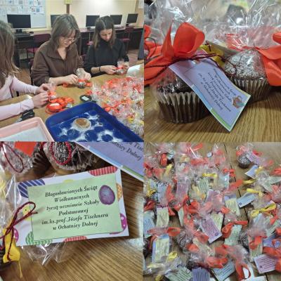 Serdeczne podziękowania dla uczennic z klasy 7 – Asi K., Oliwii i Asi M. – za własnoręczne upieczenie babeczek dla każdego podopiecznego oraz ich staranne zapakowanie i udekorowanie.