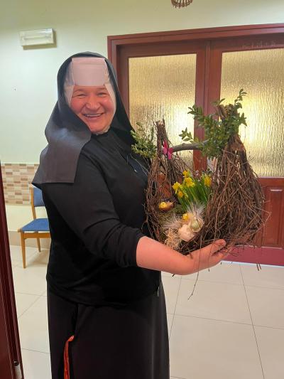 Dziękujemy bardzo Pani Marii za  przygotowanie pięknego stroiku świątecznego dla siostry przełożonej, księży emerytów, sióstr zakonnych oraz wszystkich tam pracujących🎂🌿